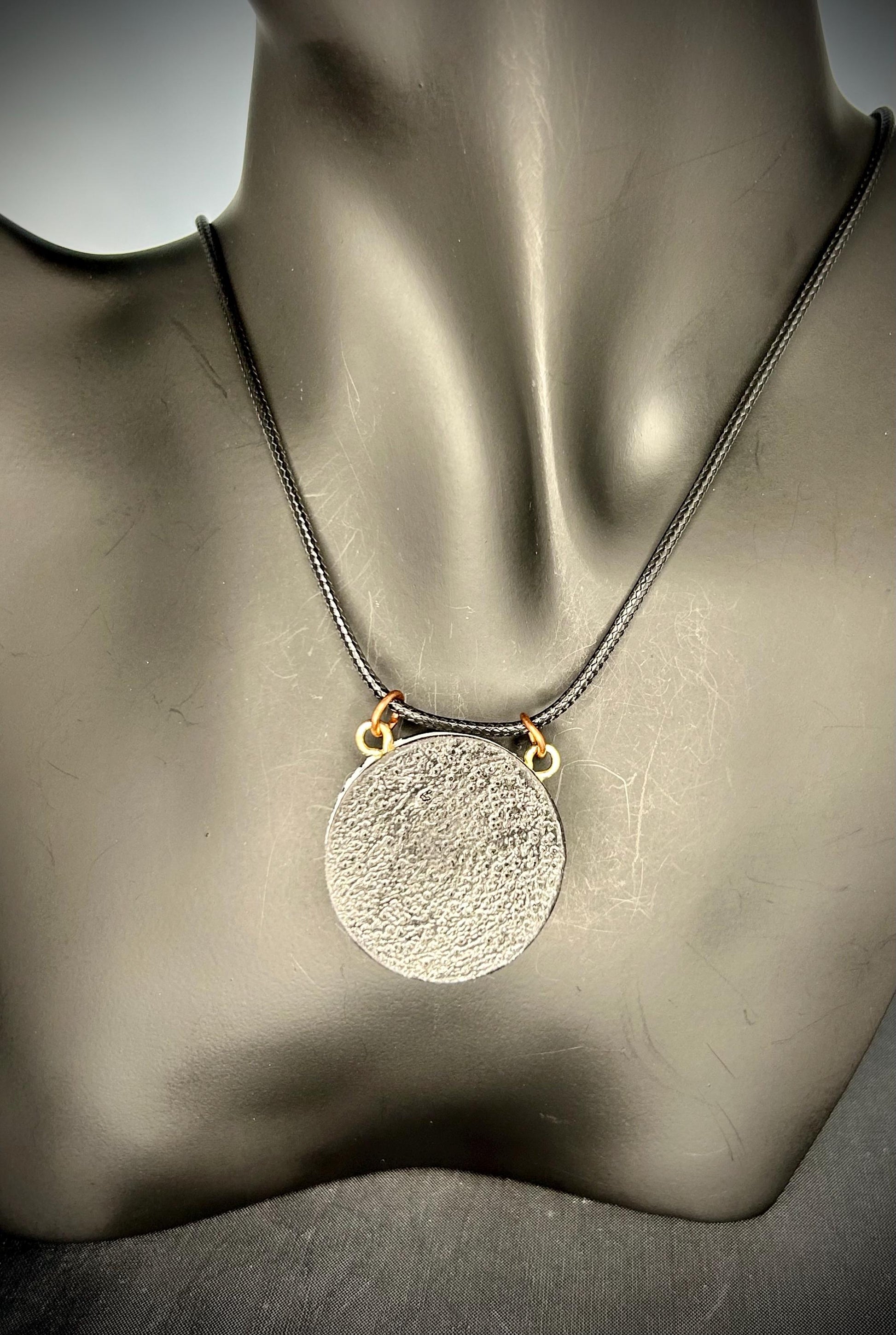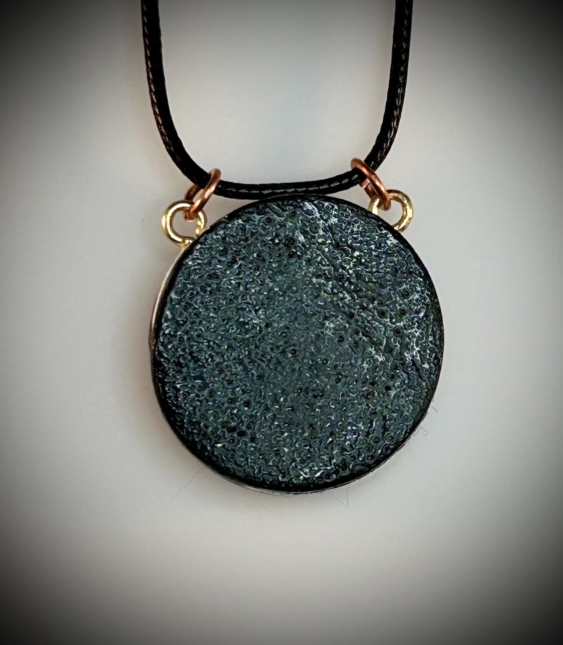 This fun clay pendant is handmade comes with an 18 inch leather cord for the chain.